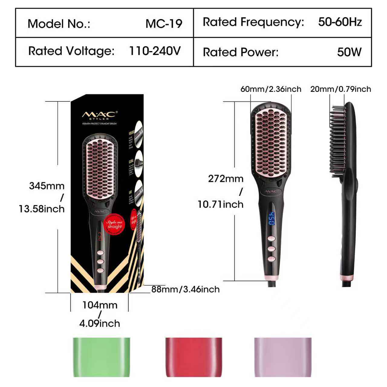 This is a professional hair straightener brush that’s also a fashion beauty comb, and it’s a popular, good-selling product. It’s designed as OEM salon equipment, but it’s also suitable for daily home use. It combines the functions of a comb and a hair straightener, and it’s the newest model with an electric LCD display and steam function—plus, it has an earthenware (ceramic) heating plate, which is gentle on hair.